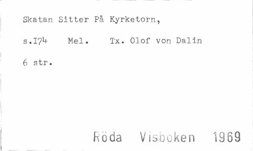 //// Skatan Sitter På Kyrketorn, //// s.17^ Mel. Tx. Olof von Dalin //// 6 str. //// Röda Visboken 1969 ////