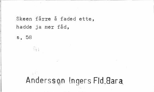 //// Skeen fårre å faded ette, hadde ja mer fåd, //// s. 58 //// '-i > //// Andersson (ngers Fld.8ara ////