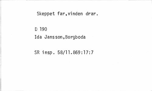 //// Skeppet far,vinden drar. D 190 //// Ida Jansson,Borgboda SR insp. 58/11.869:17:7 ////