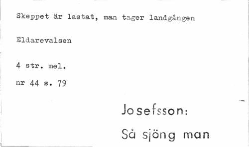 //// Skeppet är lastat, man tager landgången Sldarevalsen //// 4 str. mel. nr 44 s. 79 //// Josefsson: Så sjöng man ////
