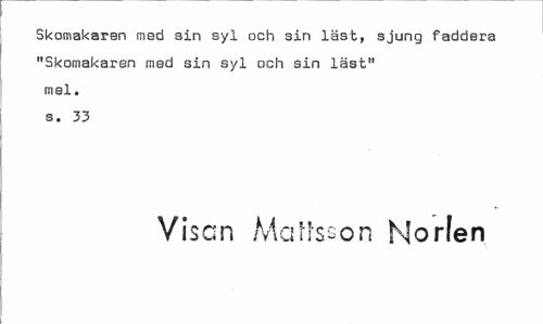 //// Skomakaren med sin syl och sin läst, sjung faddera "Skomakaren med sin syl och sin läst" mel. s. 33 //// Visan Mattsson Horlen ////
