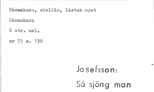 //// Skomakarn, skolåda, lästakxepet Skomakarn 6 str. mel. nr 75 s. 130 //// Josefsson: Så sjöng man ////
