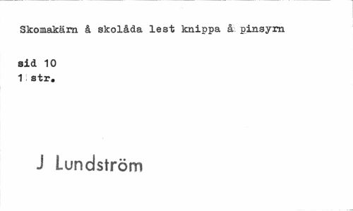 //// Skomakarn å skolåda le3t knippa å pinsym //// sid 10 1 str. //// J Lundström ////