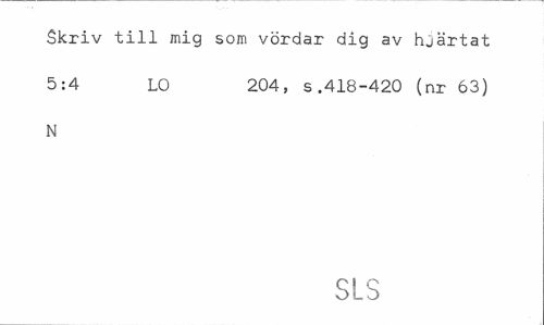 //// Skriv till mig som vördar dig av hjärtat 5:4 LO 204, s.418-420 (nr 63) //// N //// SLS ////