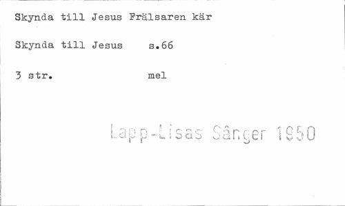 //// Skynda till Jesus Frälsaren kär Skynda till Jesus s.66 3 str. mel //// Ldpp-Ltsäs Sånger i850 ////