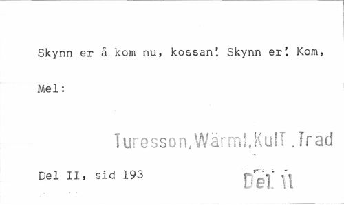 //// Skynn er å kom nu, kossan! Skynn er! Kom, Mel: //// Turesson,Wärml.KulI .Trad //// Del II, sid 193 De] U ////
