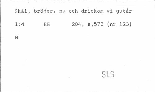 //// Skål, bröder, nu och drickom vi gutår 1:4 EE 204, s.573 (nr 123) //// N //// SLS ////