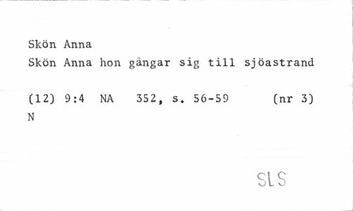 //// Skön Anna //// Skön Anna hon gångar sig till sjöastrand //// (12) 9:4 NA 352, s. 56-59 (nr 3) //// N //// SIS ////