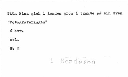 //// Skön Pina gick i lunden grön å tänkte på sin Sven "Fotografe ringen" 6 str* mel* H;. 8; //// L Bondeson ////