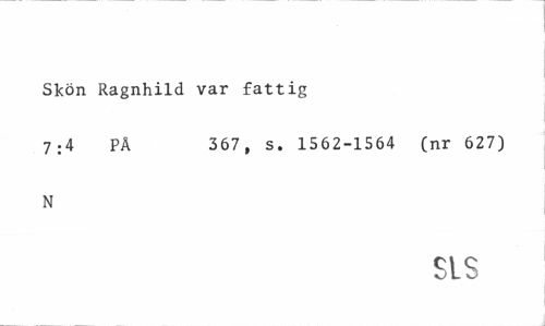 //// Skön Ragnhild var fattig //// 7:4 PÄ 367, s. 1562-1564 (nr 627) //// N //// SLS ////