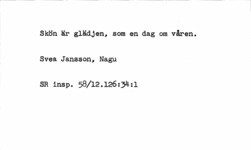 //// Skön är glädjen, som en dag om våren. Svea Jansson, Nagu SR insp. 58/12.126:34:1 ////