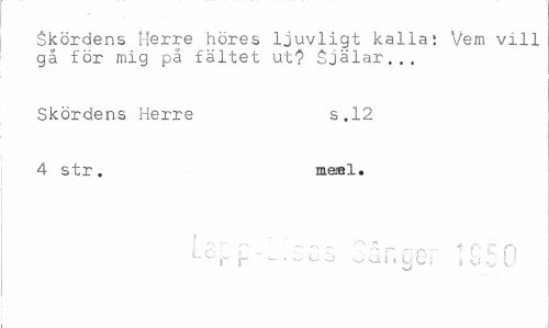 //// Skördens Herre höres ljuvligt kalla: Vem vill gå för mig på fältet ut? Själar... //// Skördens Herre s.12 //// 4 str. me»l. //// ' - '' , //// t-cr r - • ¦ :: * 1 -i } U ////