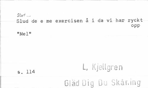 //// Sbrf... //// Slud de e me exercisen å i da vi har ryckt //// opp //// "Mel" //// L, Kjellgren //// s, 114 //// Glad Uiq Ou Skåning ////