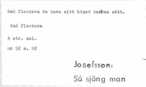 //// Små fleckera de hava sitt högst ktufcsa sätt. //// Små fleckera //// 4 str. mel. nr 52 s. 92 //// Josefsson} //// Så sjöng man ////