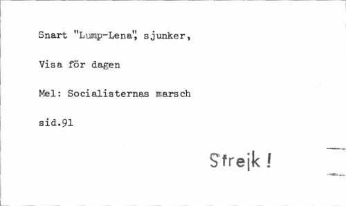 //// Snart "Lump-Lena" sjunker, Visa för dagen Mel: Socialisternas marsch sid.91 //// Strejk ! ////