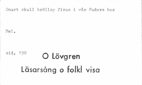 //// Snart skall bröllop firas i vår Faders hus Mel. //// sid. 198 >-v i .. //// O Lovgren //// Läsarsång o folk! visa ////