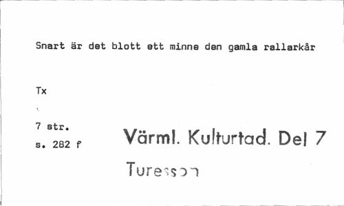 //// Snart är det blott ett minne den gamla rallarkår Tx //// 7 str» //// s. 282 f Värm!. Kulturtad. Del 7 //// Turess oi ////