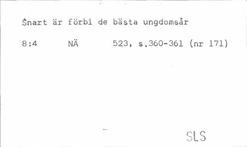 //// Snart ar förbi de bästa ungdomsår //// 8:4 NÄ 523, s.360-361 (nr 171) //// SLS ////