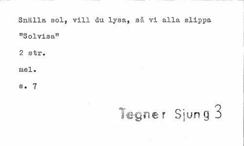 //// Snälla sol, vill du lysa, så vi alla slippa "Solvisa" 2 str. mel. s. 7 //// Tegne r Sjun g 3 ////