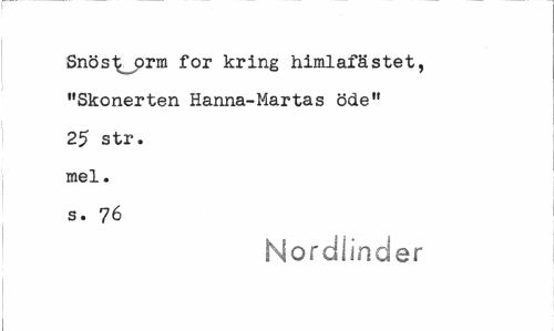//// Snöstorm for kring himlafästet, "Skonerten Hanna-Martas öde" 25 str. mel. s. 76 //// Nordlinder ////