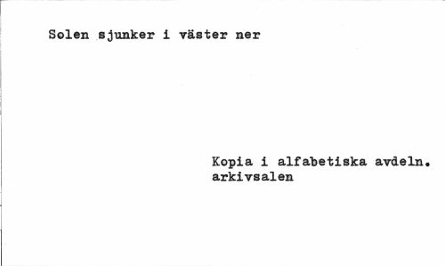 //// Solen sjunker i väster ner //// Kopia i alfabetiska avdeln. arkivsalen ////