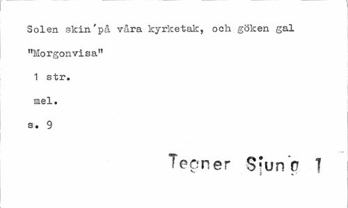 //// Solen skin'på våra kyrketak, och göken gal "Morgonvisa" 1 str. mel. s. 9 //// Teorier S'uno 1 //// i *.-> ////