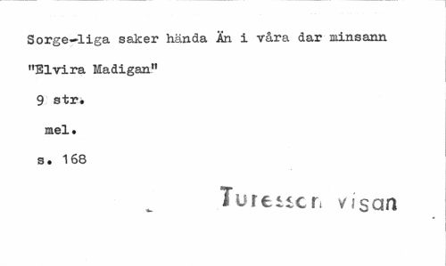 //// Sorge-liga saker hända Än i våra dar minsann "Elvira Madigan" 9 str. //// mel. s. 168 //// Turenen visan ////