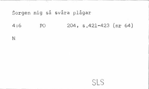 //// Sorgen mig så svåra plågar //// 4:6 PO 204, s.421-423 (nr 64) //// N //// SLS ////