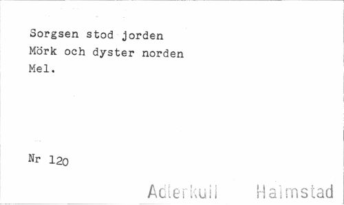 //// Sorgsen stod jorden Mörk och dyster norden Mel. //// Nr 120 //// Adlerkuil Halmstad ////