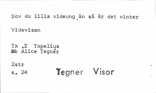 //// Sov du lilla videung än sä är det vinter Videvisan //// Tx .Z Topelius Mk Alice Tegnér //// 2str //// s. 24 Tegnér Visor ////