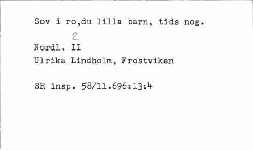 //// Sov i ro,du lilla barn, tids nog. //// 2. //// Nordl. II //// Ulrika Lindholm, Frostviken SR insp. 58/11.696:131** ////