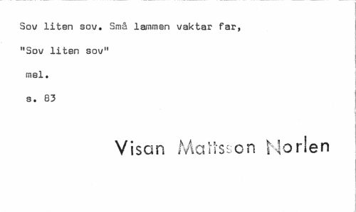 //// Sov/ liten sov. Små lammen vaktar far, "Sov liten sov" mel. s. 83 //// Visan Mattsson Horlen ////