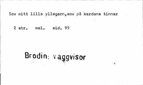 //// Sov mitt lilla yllegarn,sov på kardans tinnar 2 str. mel. sid. 95 //// Brodin: vaggvisor ////