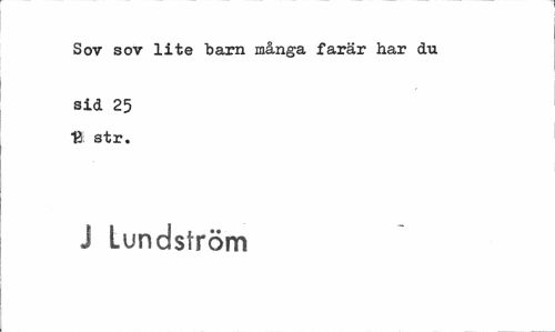 //// Sov sov lite barn många farär har du //// sid 25 str. //// j Lundström ////