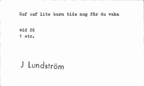 //// Sof sof lite barn tids nog får du vaka //// sid 26 1 str. //// J Lundström ////