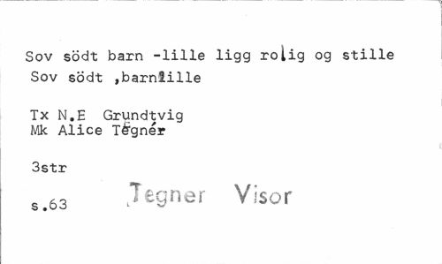 //// Sov södt barn -lille ligg rolig og stille Sov södt »barnlille //// Tx N.E Grundtvig Mk Alice Tegnér //// 3str //// s>63 Tegnér Visor ////