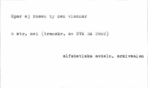 //// Spar ej rosen ty den vissnar 6 str. mel (transkr. av SVA BA 2ööZ) //// alfabetiska avdeln. arkivsalen ////