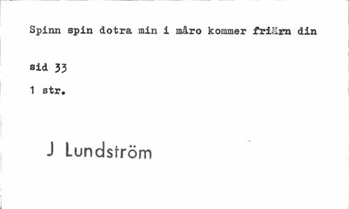 //// Spinn spin dotra min i måro kommer friära din //// sid 33 1 str. //// J Lundström ////