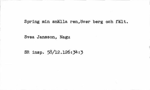 //// Spring min snälla ren,över berg och fält. Svea Jansson, Nagu SR insp. 58/12.126:^:3 ////