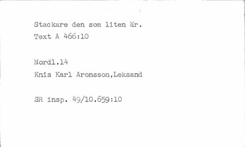 //// Stackare den som liten är. Text A 466:10 //// Nordl.14 //// Knls Karl Aronsson,Leksand SR insp. 49/10.659=10 ////