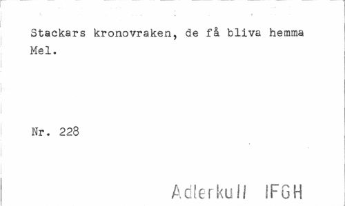 //// Stackars kronovraken, de få bliva hemma Mel. //// Nr. 228 //// Adlerkull 1FGH ////