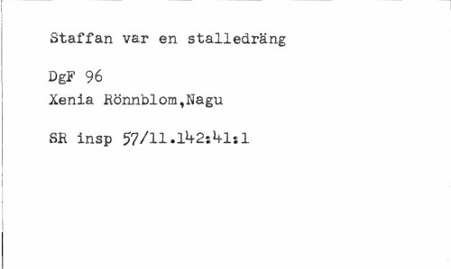 //// Staffan var en stalledräng DgF 96 //// Xenia Rönnblom,Nagu SR insp 57/11.1^28^1»! ////