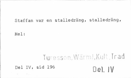 //// Staffan var en stalledräng, stalledräng, Mel: //// Tu •• ss" n,Wä: rol.Kult.Trad //// Del IV, sid 196 ,| jy ////