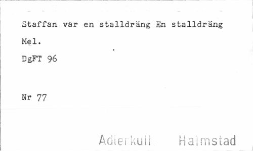 //// Staffan var en stalldräng En stalldräng //// Mel. //// DgFT 96 //// Nr 77 //// Adlei ku i i Halmstad ////