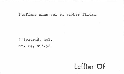 //// Staffans Anna var en vacker flicka //// 1 textrad, mel. nr. 24, sid.56 //// Leffler öf ////