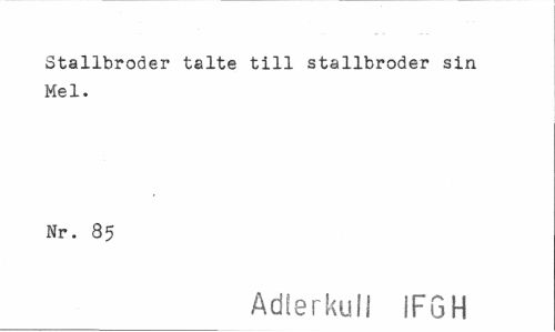 //// Stallbroder talte till stallbroder sin Mel. //// Nr. 85 //// Adierkull IFGH ////