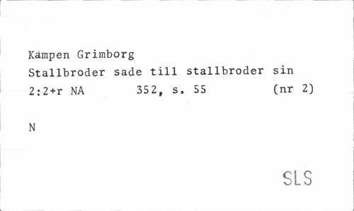 //// Kampen Grimborg //// Stallbroder sade till stallbroder sin 2:2+r NA 352, s. 55 (nr 2) //// N //// SLS ////
