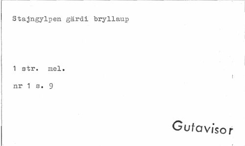 //// Stajngylpen gärdi bryllaup //// 1 str. mel. nr 1 s. 9 //// Gufav/sor ////