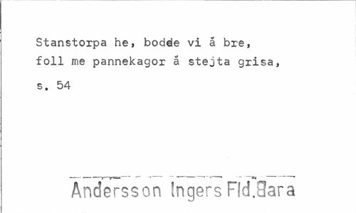 //// Stanstorpa he, bodde vi å bre, foll me pannekagor a stejta grisa, //// s. 54 //// Andersson tngers Fld.Sara ////