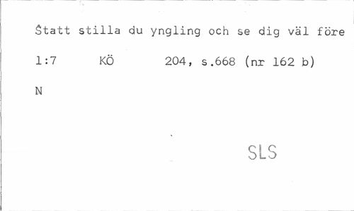 //// Statt stilla du yngling och se dig väl före 1:7 KÖ 204, s .668 (nr 162 b) //// N //// SLS ////